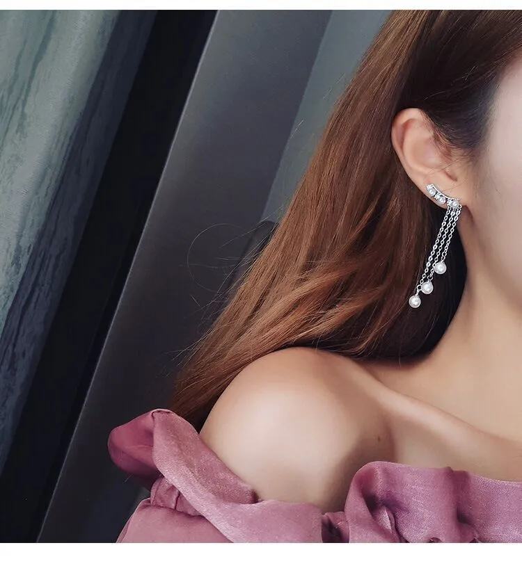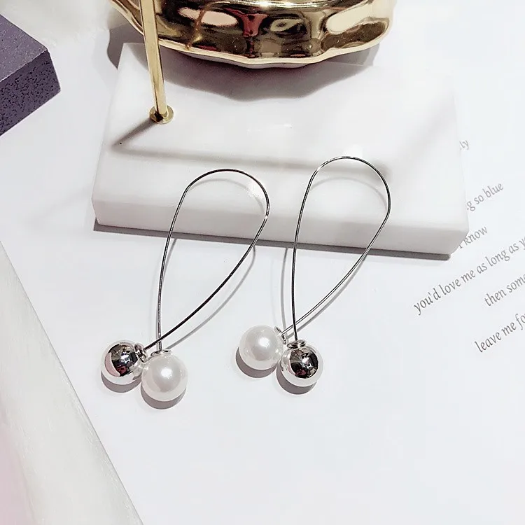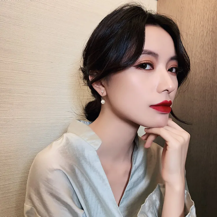 Cross Imitation Pearl Female Elegant Earrings Simple Temperament Korean Fashion Sweet Delicate Earrings Bride Wedding Jewelry