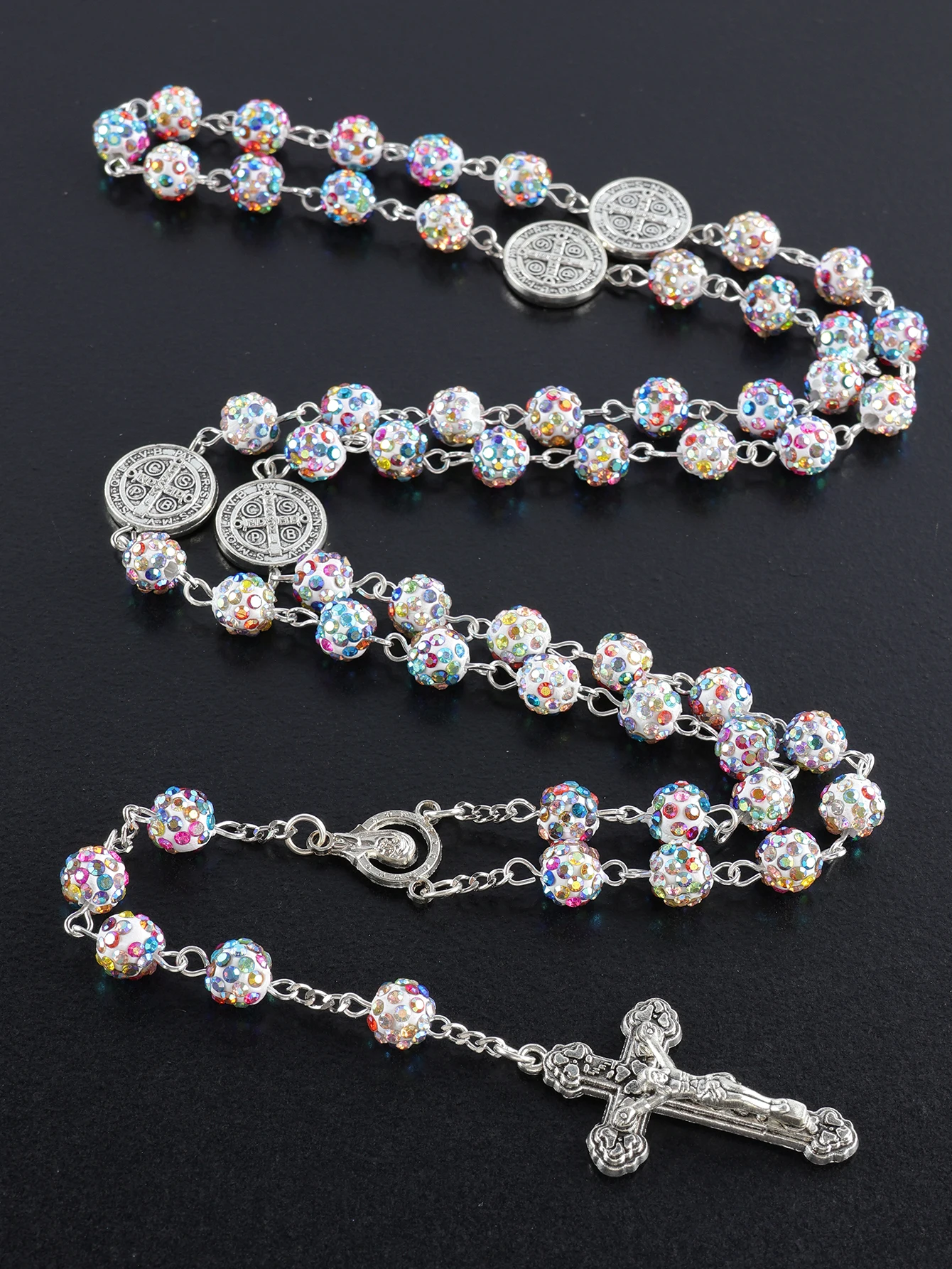 1 piece retro classic multi-color 8mm round rosary DIY pure handmade work cross religious necklace men's and women's jewelry gif