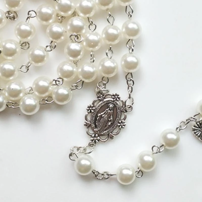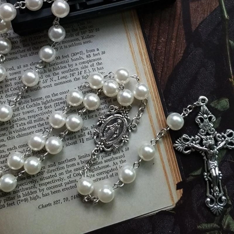 8mm Prayer Beads Rosary Necklace Mary Jesus for Cross Pendant Catholic Necklaces Religious Jewelry Women Charm Gifts