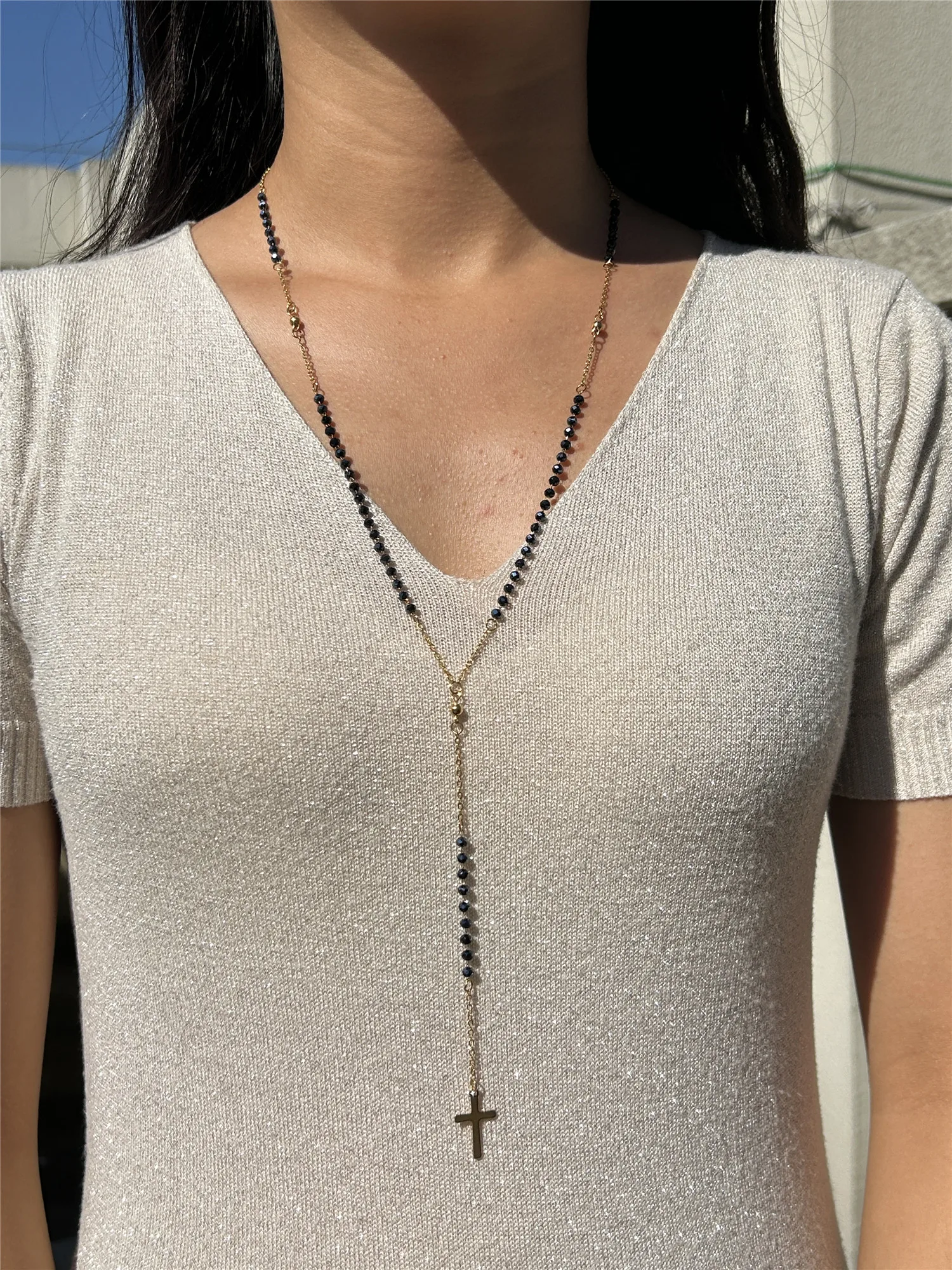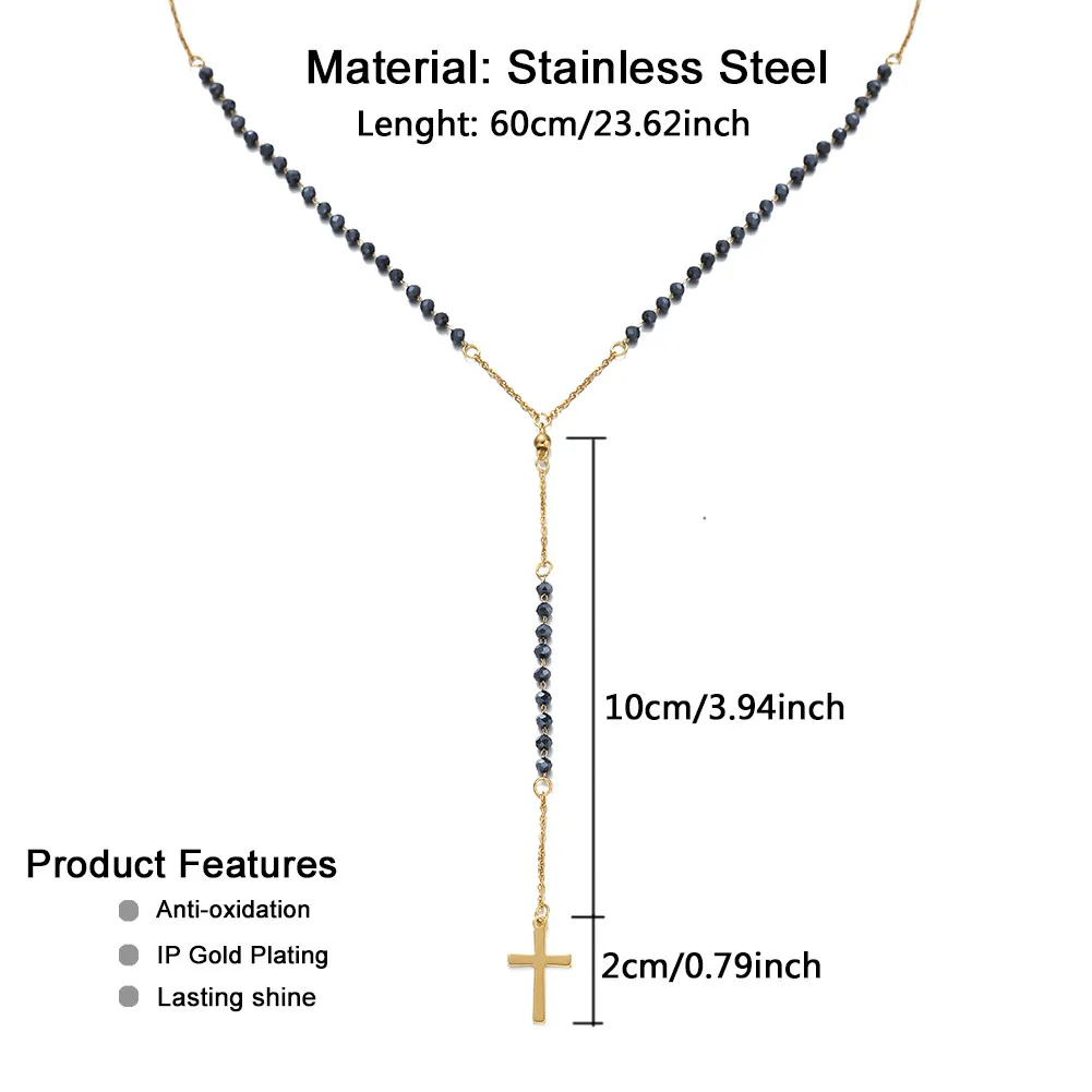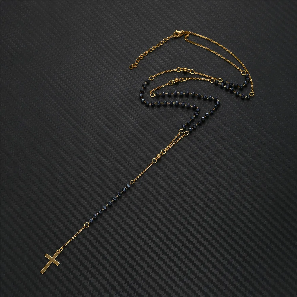 Catholic Stainless Steel Rosary Beads Chain Y Shape Cross Pendant Necklace For Women Men Religious Jewelry