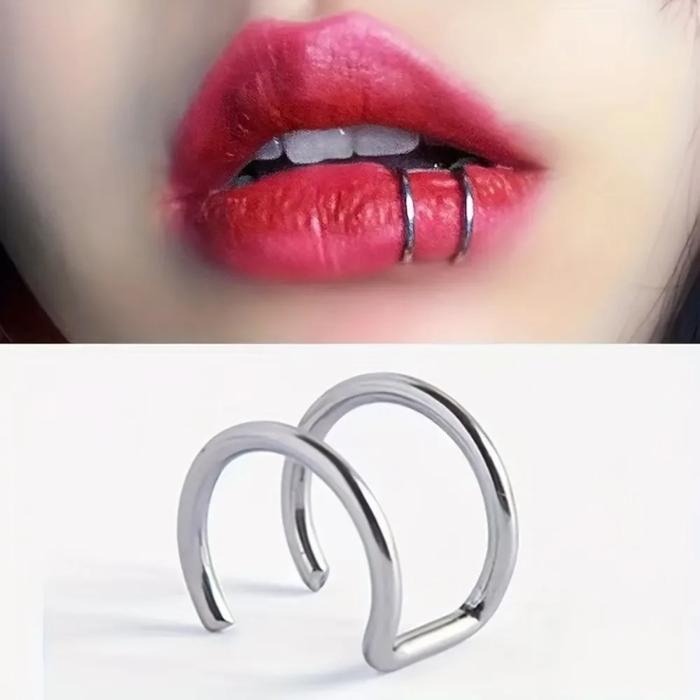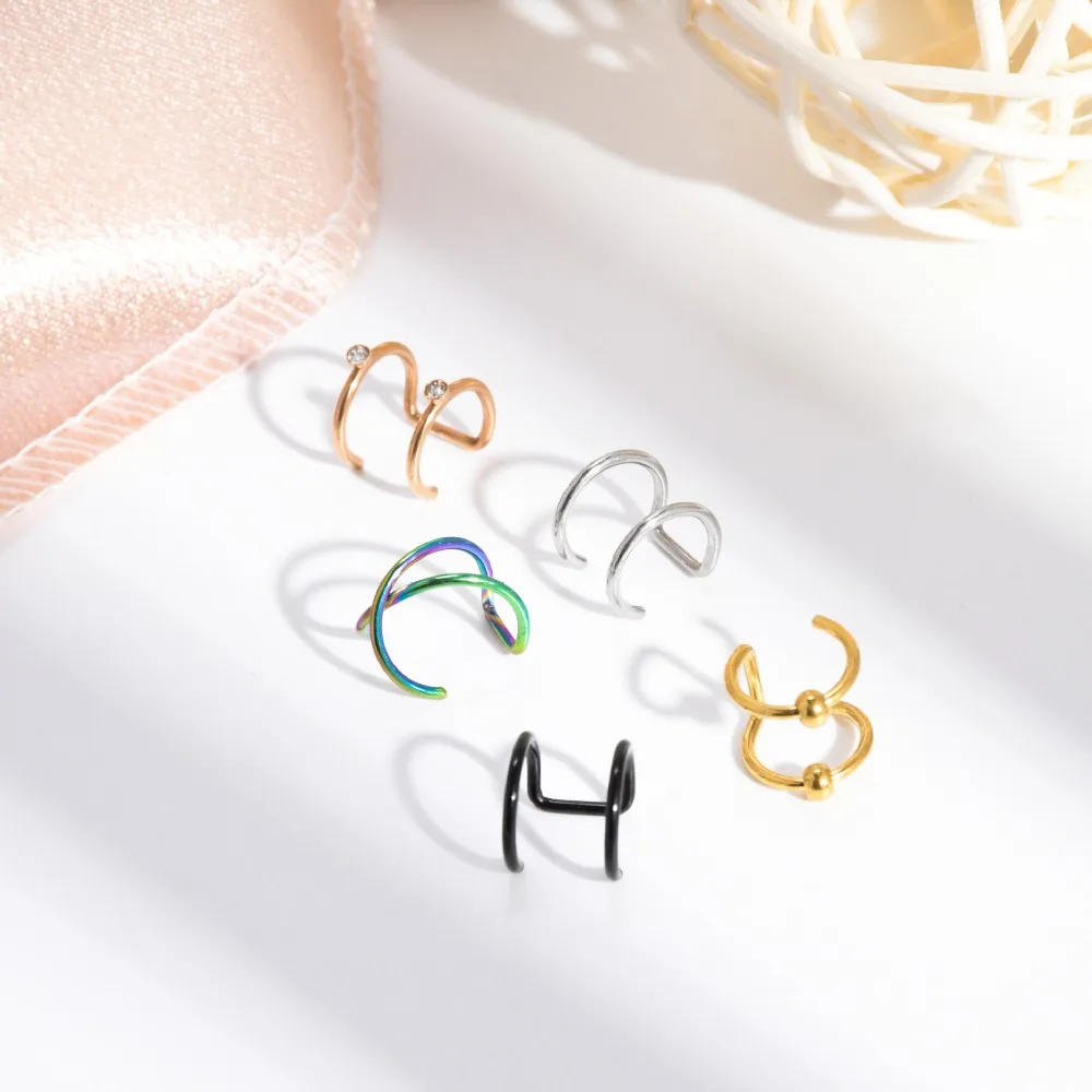 Fashion Stainless Steel Fake Piercing U-shaped Double Layer Ear Clips Lip Clip for Women Charms Ear Bone Nail Ear Cuff Jewelry