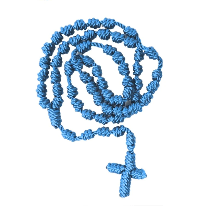 Handmade Knotted rosary with Cross Charm Red rope rosary necklace cord, Black thread rosary Catholic & Spiritual Prayer Gift