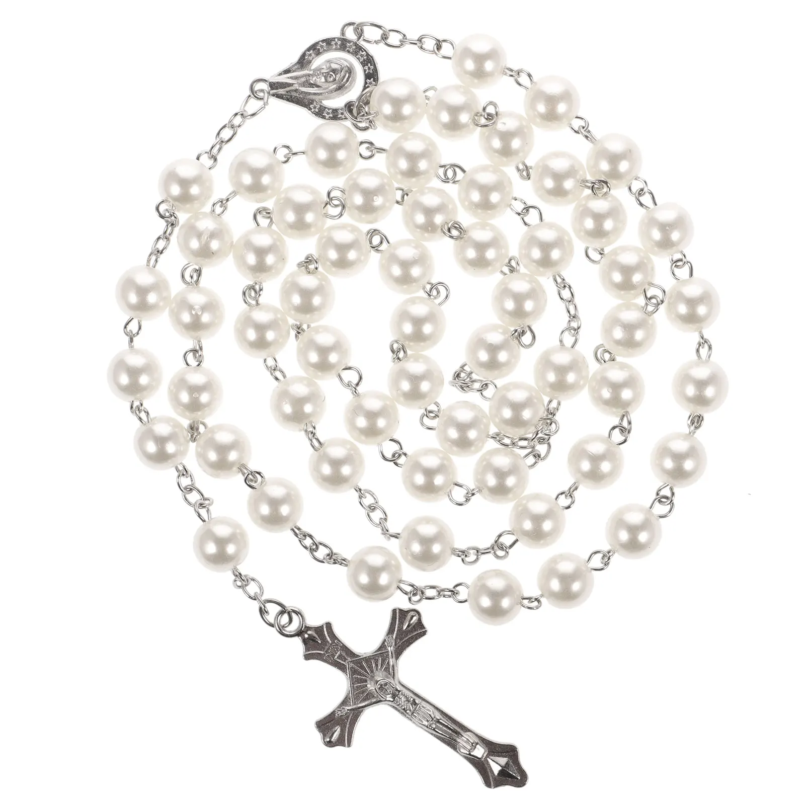 - The combination of pearl decoration and delicate color is luxurious and attractive, this rosary necklace is good for being a present option.