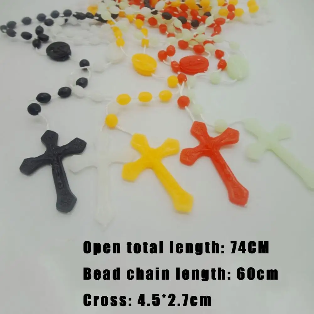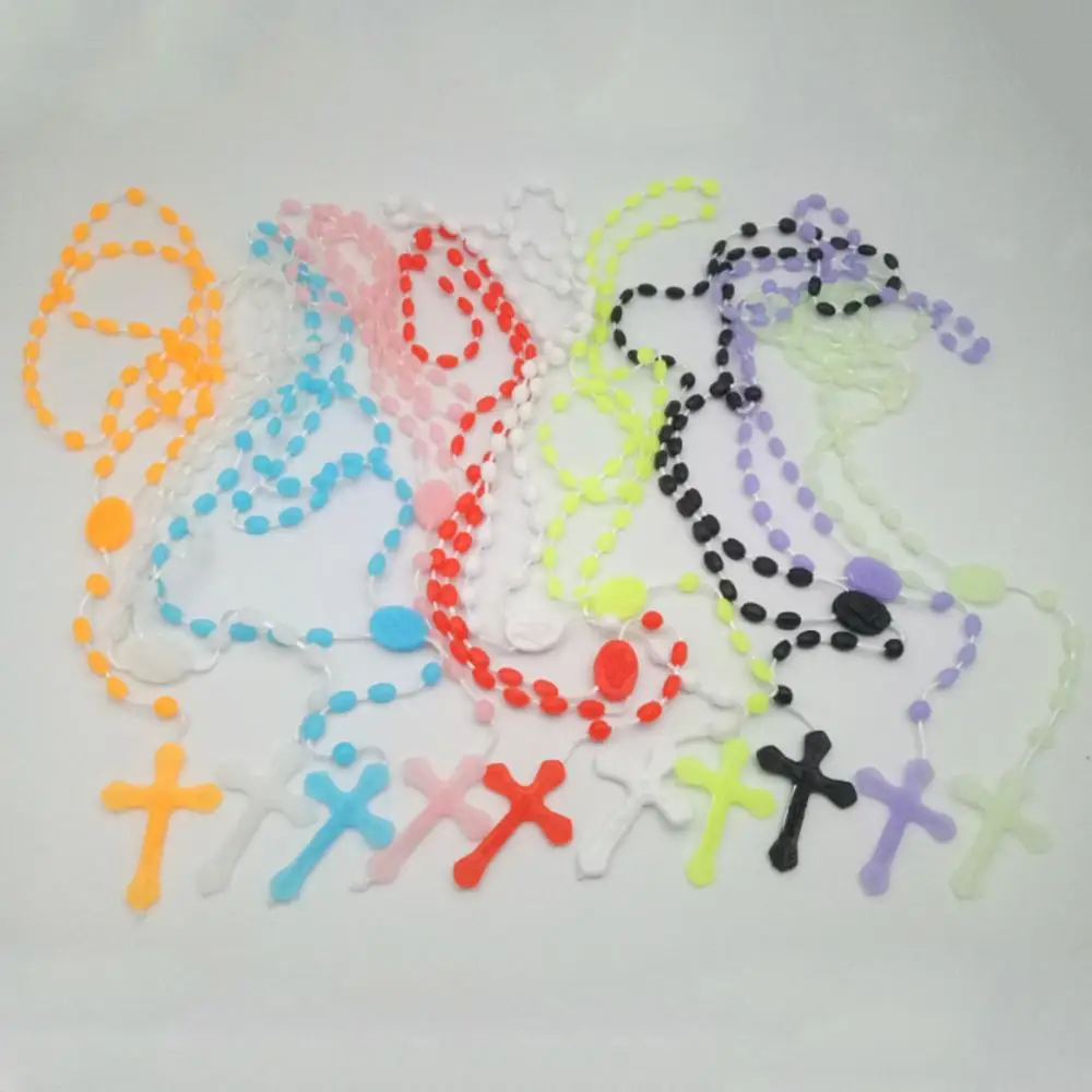 Luminous Glowing Rosary Necklace Plastic Catholic Cross Necklace Religious
