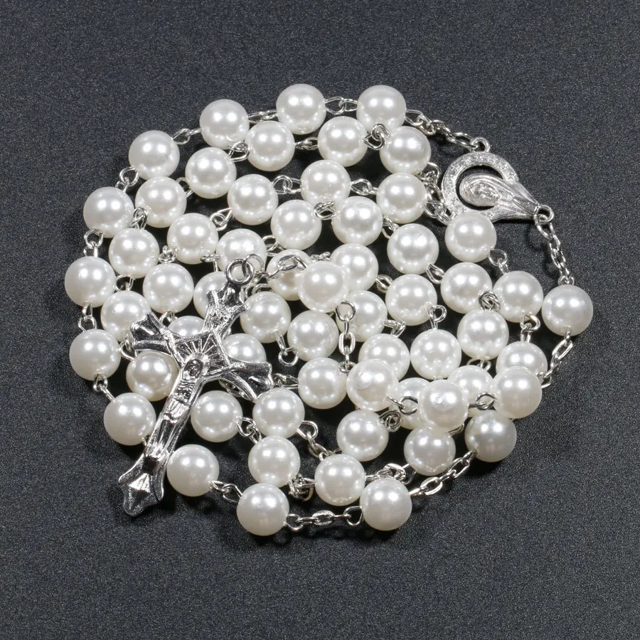 Religion Rosary Necklace For Women Virgin Mary Jesus Cross Pendant Long Beads Chain Female Christian Fashion Jewelry Accessories