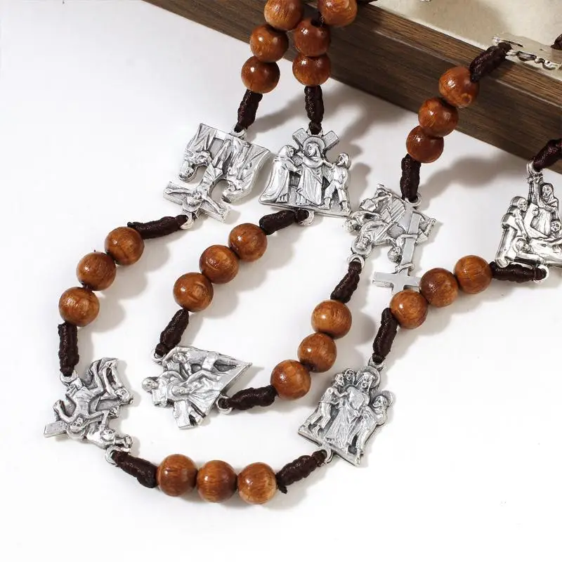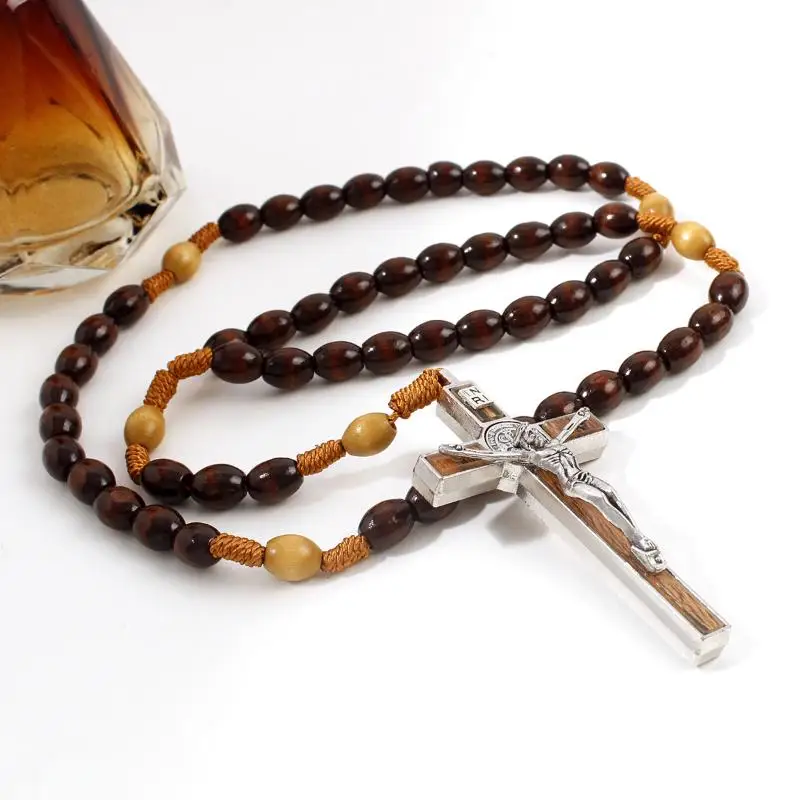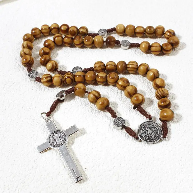 Retro Religion Belief Catholic Cross St. Benedict Black Gallstone Prayer Rosary Pendant Necklace Jewelry Gift